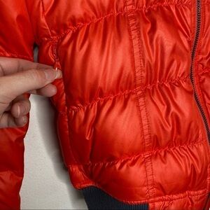 Athleta Womens Dobby Goose Down Puffer Bomber Jacket Quilted red grey 138700