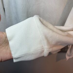Athleta Double Cozy Karma Funnel Neck Sweatshirt Seasalt Cream Pullover Side Slit Detail Ribbed Cuffs and Hem Super Soft and Comfortable Funnel Neck Relaxed Fit Stretch Comfy Cozy Athletic Yoga Winter Athlesiure