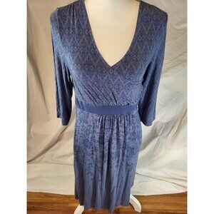 Athleta Womens Dress Faux Wrap Stretch Blue Floral 3/4 Sleeve Size S Small