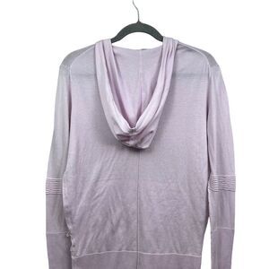 Athleta Womens Enlighten Hooded Sweater Silk Blend V Neck Pockets Pink Size M