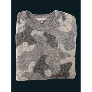 Athleta Womens Gray Camouflage Sweater Sz. Medium Alpaca Wool Blend Long Sleeve Crewneck