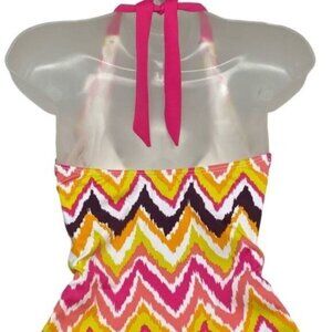 Athleta Women's Halter Tankini Swim Tank XS Top Orange Pink Colorful Psychedelic