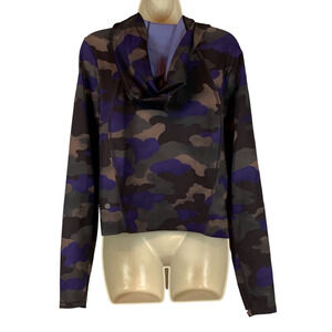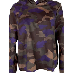 Athleta Womens Hoodie Sweatshirt Brown Green Camouflage Thumb Holes Stretch M