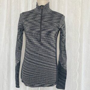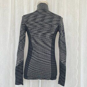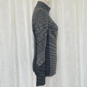 Athleta Women's Jacket Flint Gray Black Flurry Half Zip Base Layer Mock Neck Long Sleeve Thumbholes Stretch Active Outdoor Athleisure Winter Training Running