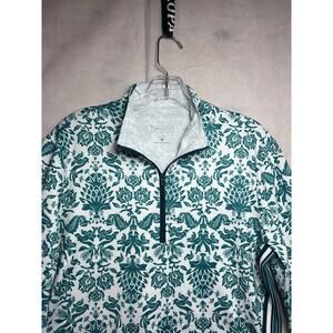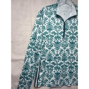 Athleta Women's Large 1/4 Zip Pullover Long Sleeve Pineapple Stretch Floral Teal