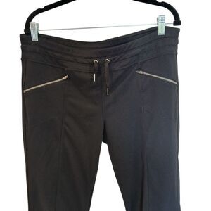 Athleta Womens Large Black Cropped Athletic Pants Stretch Ankle Drawstring Zip
