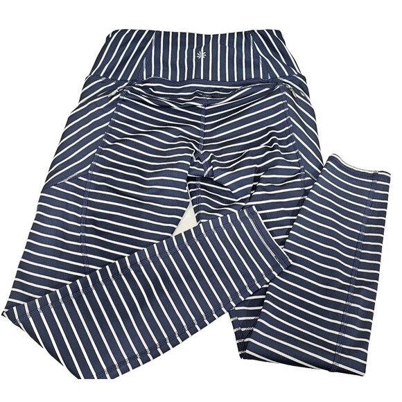 Athleta Womens Leggings Contender Powerlift 7/8 Pockets Navy Striped Yoga Gym XS