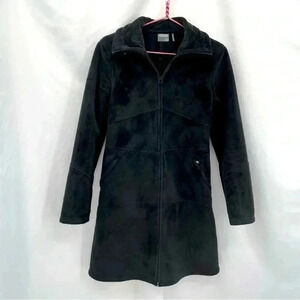 Athleta Women's Long Sherpa Minka Coat XS Black Fleece Zipper Closure Pockets