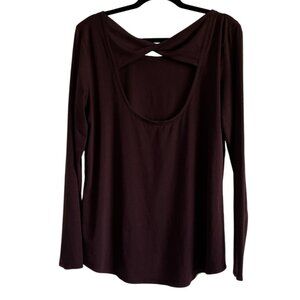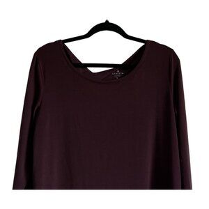 Athleta Womens Long Sleeve Top Size L Burgundy Athleisure Yoga Gym Cut Out Back