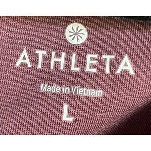 This Athleta long sleeve top offers a relaxed fit with a rich burgundy color. Twist cut out back. Pre owned and in good condition. Size Large