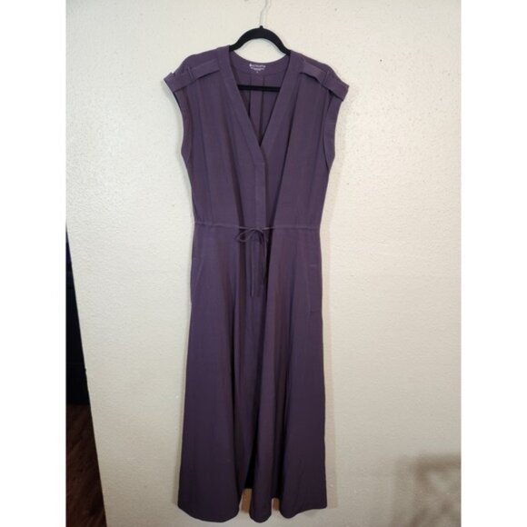 Keywords: Athleta, midi dress, sleeveless dress, purple dress, drawstring waist, pockets, casual dress, comfortable dress, athletic wear, size L, women's fashion, versatile dress, everyday dress, travel dress