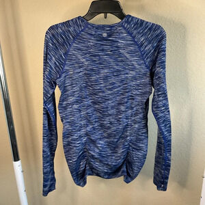 Athleta Womens Medium Fastest Track Long Sleeve Blue Space Dye Ruched Top