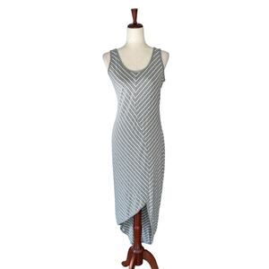 Athleta Women's Medium Maxi Dress Heather Grey Cross-Shore Sleeveless Striped