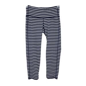 Athleta Women's Navy and White Striped Chaturanga Capri Leggings Size XS