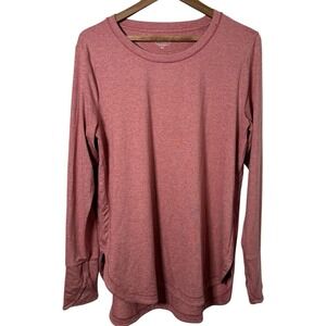 Athleta Womens Pink Long Sleeve Crew Neck UPTEMPO Top Curved Hem Side Slits XLT
