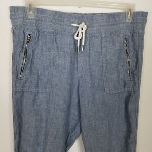 Athleta Women's Retreat Linen Jogger Pants Sz 12 Blue Crop Drawstring Beach