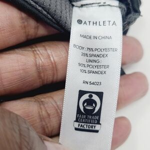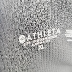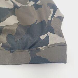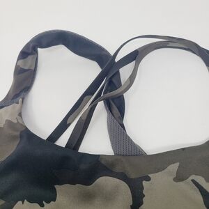 Women's camo print, Run Free strappy cross-back, medium hold sports bra by Athleta, size XL. Fabric blend of polyester and spandex. Excellent pre-owned condition overall; bra padding not included. Stock pic is same bra, different color design; offered to show fit.