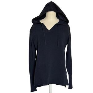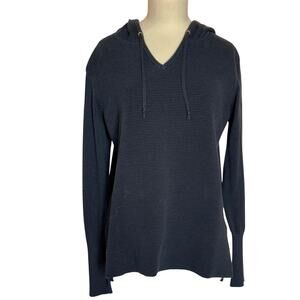 Athleta Womens S Navy Blue V-Neck Aster Hood Knit Pullover