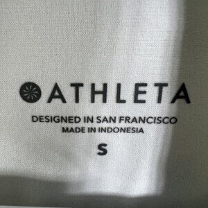 Athleta jacket women's fashion snake print high collar elastic hem long sleeves San Francisco design polyester blend small size white jacket stylish outerwear Indonesian made Athleta style