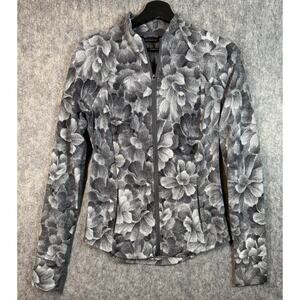 Athleta Womens Salutation Gray Floral Textured Jacket Stretch Thumbhole - Small