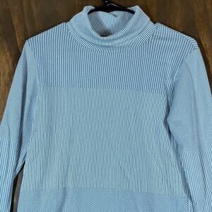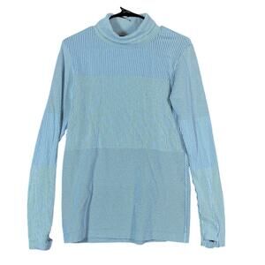 Athleta Womens Shirt White Flurry Base Layer Striped Turtleneck Stretch Medium