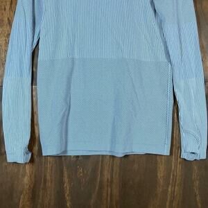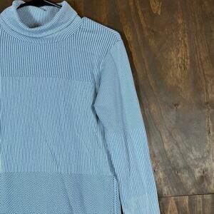 Athleta Womens Shirt White Flurry Base Layer Striped Turtleneck Stretch Medium