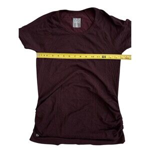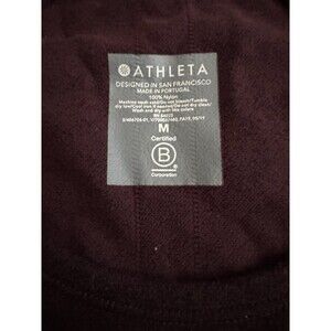 This Athleta Speedlight Seamless Tee is perfect for any sports activity like gym training, cross-training, or running. The tee is made with a medium fabric wash and is available in a solid pattern with a round neckline and short sleeves. It comes in a women's size medium and is a red color, making it a spice cabernet variation. The pullover closure adds convenience, and the athletic fit is perfect for any sports occasion. The tee is from the Athleta brand and is listed under the activewear tops category.
