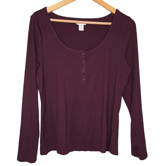 Athleta Women's Signature Modal Rib Henley Top Spiced Cabernet Size XL