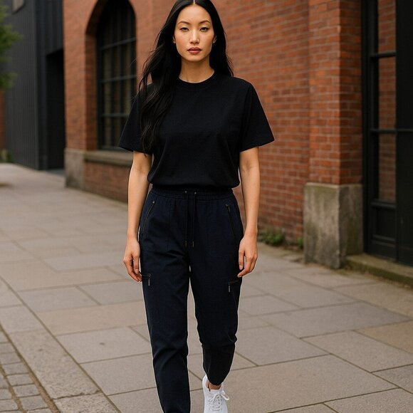 Athleta Womens Size 4 Black Elastic Waist Zipped Pockets Ankle Zip Jogger Pants