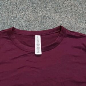 The Athleta Women's Size XXS NWT Nighttime Bliss Sleep Tee in Burgundy Wine Color is a comfortable and stylish activewear top perfect for a peaceful night's sleep or relaxing evenings. This pullover tee features a solid pattern, short sleeves, and a relaxed fit, making it easy to care for with its machine washable fabric. The burgundy wine color adds a touch of vibrancy to the blend fabric, making it a colorful and lightweight option for the spring and summer seasons.