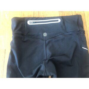 This is a pair of women's black capri Stride leggings from Athleta, size XXS. Zip pocket on the back of the waistband. Very good condition.