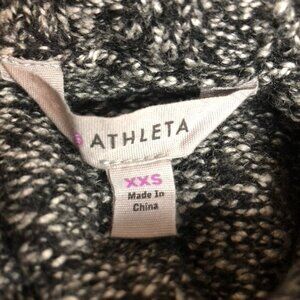 This cozy Athleta turtleneck sweater in a chic black and white knit is perfect for those chilly days. The wool blend fabric ensures warmth and comfort, while the stylish design makes it a versatile addition to your wardrobe. Ideal for layering or wearing on its own.