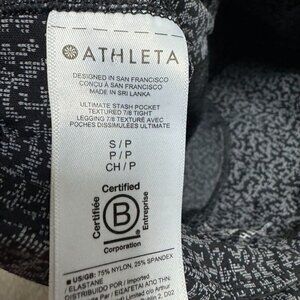 Athleta's small size, ultimate stash pocket, textured 7/8 tight leggings for women offer a comfortable fit and unique style. These leggings are perfect for workouts, casual wear, or making a fashion statement.