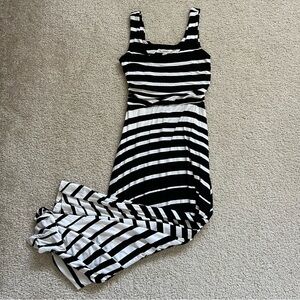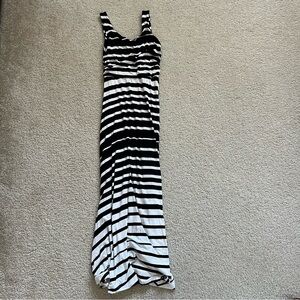 Athleta Women's Small Black White Striped Sleeveless Tank Maxi Dress Long Beach,