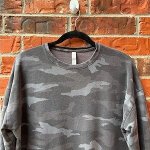 Athleta Womens Small Studio To Street Gray Camo Pullover Sweatshirt