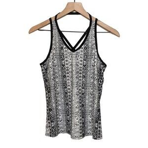Athleta Womens Snake Print Limitless Tank Top Size XS Black White V Neck