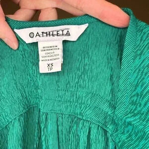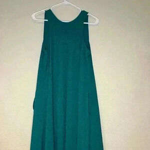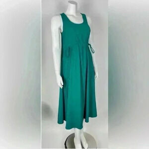 Athleta Women’s Solid Emerald Green Echo Midi Dress NWOT Ruched Waist XS