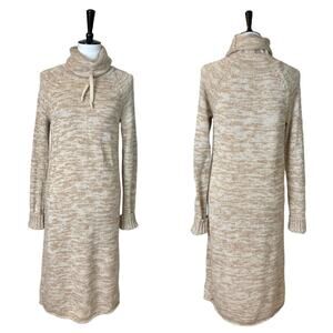 Athleta Women’s Sweater Dress Traverse Merino Wool Midi Length Funnel Neck Tan M