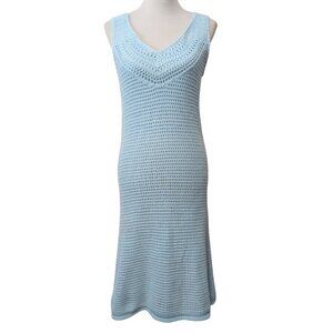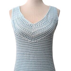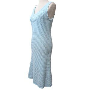 Athleta Womens Sz M Light Blue Kirra Crochet Overlay Sleeveless Tank Dress Flaw