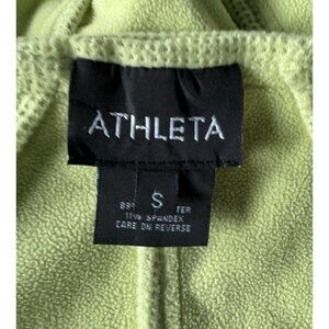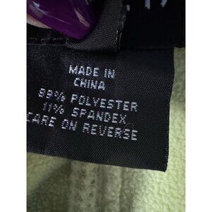 Athleta woman's purple, yellow, blue and white swirl soft shell jacket. Jacket is fleece-line and has an interior zip pocket. It's made of a poly spandex blend and is a woman's size small.