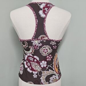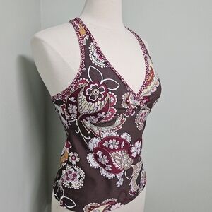 Athleta Womens Tankini Swim Top V-neck Paisley Racerback Brown Maroon Lavender