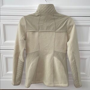 Excellent condition! Chic and cozy cream color jacket. Features quilted sleeves and zip pockets. Ideal for winter sports.