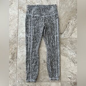 These Athleta Women's Ultimate Stash Textured 7/8 Tight Tailwind Black/White are a size medium. They are in excellent preowned condition.