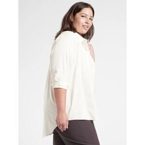 Athleta Womens Urbanite Top 3X Textured Long Sleeve Button Up Shirt Sea Salt