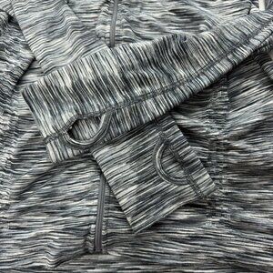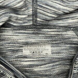 Athleta Womens XL Black White Gray Stripe Yoga Full Zip Fitted Hoodie Jacket