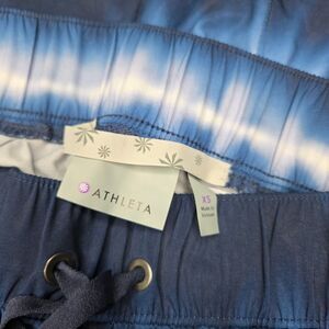 These versatile and stylish Athleta shorts are perfect for your active lifestyle. Designed with a stunning blue tie-dye pattern, these shorts feature zipper pockets for added functionality and convenience. The stretch fabric ensures comfort during workouts or casual outings. Ideal for running, yoga, or lounging.