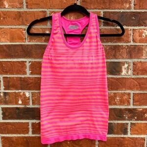 Athleta Womens XS Neon Pink Stripe Built In Shelf Bra Racerback Active Tank Top