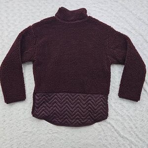 Athleta Cozy Sherpa Snap Sweatshirt 466888 Maroon Wine Red Size XS New Without Tags