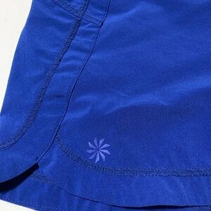 Athleta Womens lined Running Shorts size XL Purple Blue. Has a couple white spots on the hem of the shorts. Small spots. Smoke free home. Ships fast!