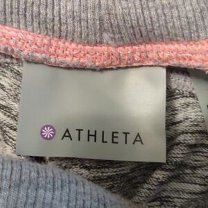Athleta size extra small, gray fold over waistband drawstring Capri sweatpants zippered pockets in front, snap pockets in back, Gray with pink accents, great for jogging or just lounging around excellent condition